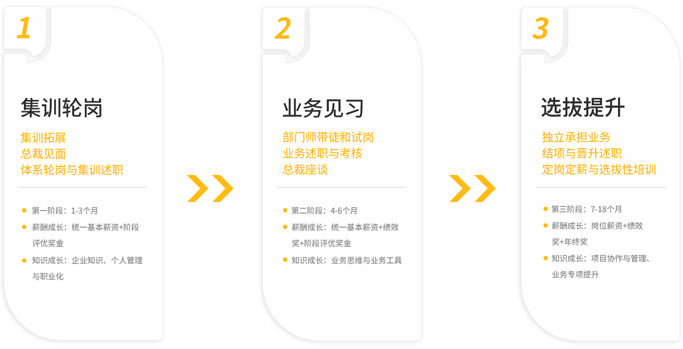 面试结果决定同学们是否能成为三度白菜网论坛管培生。被录取的同学,薪资成长将分为以下三阶段:(1-3个月):统一基本薪资+阶段性评分奖励;(4-6个月):统一基本薪资+绩效工资+阶段性考核奖;(7月以后):会根据部门及确定岗位的特质确定不同的薪资标准。